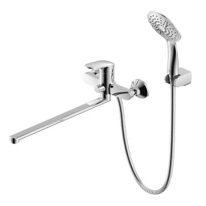 Смеситель Rossinka RS45-46 для ванны с регулируемой высотой штанги и лейкой "Тропический дождь"