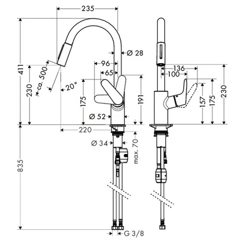 Смеситель для мойки Hansgrohe Focus 31815000 с вытяжным изливом