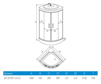 Душевая кабина угловая ERLIT ER3510P-C3-RUS 100х100х215 матовое стекло низкий поддон