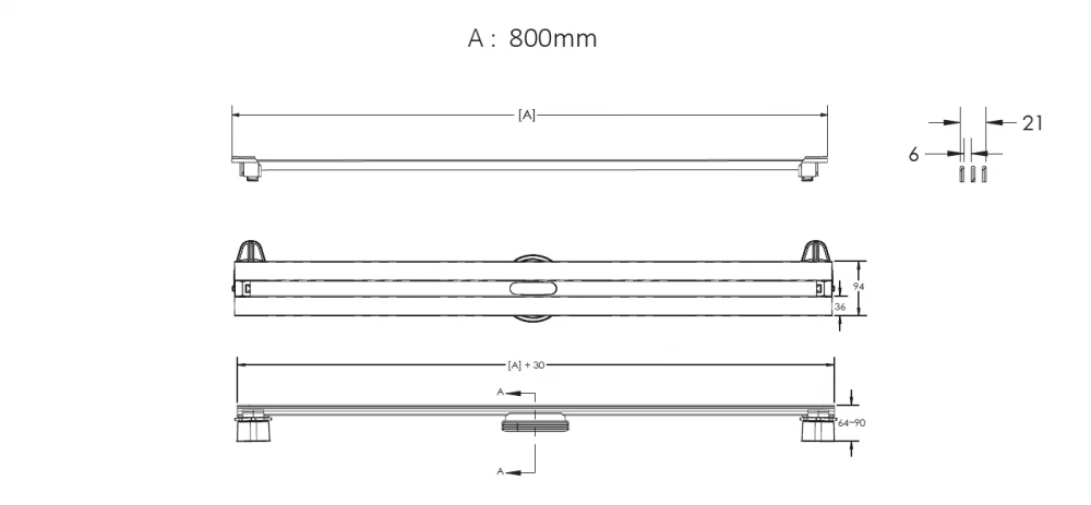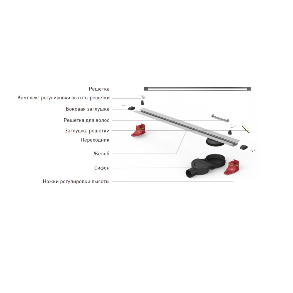 Желоб BERGES 090154 водосток SUPER Slim 800, матовый хром, S-сифон D50 H60 боковой