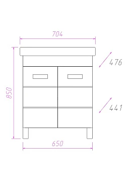 Размеры тумбы без учета раковины и ножек: 65x44x67 см.