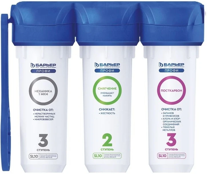 3."БАРЬЕР ПРОФИ ПостКарбон" удаляет остаточный хлор и его побочные продукты, неприятные запахи и привкусы, кондиционирует воду.