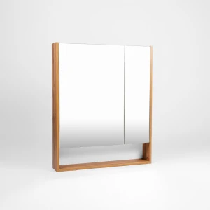 Зеркальный шкаф оснащен системой доводчика, которая обеспечивает плавное и бесшумное закрывание створок. Отсутствие видимой фурнитуры подчеркивает минималистичный дизайн и делает конструкцию лаконичной и современной. Дополнительным удобством является открытая полка для хранения, где можно разместить часто используемые предметы, такие как косметика или средства гигиены.