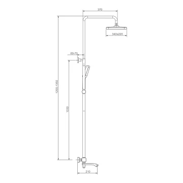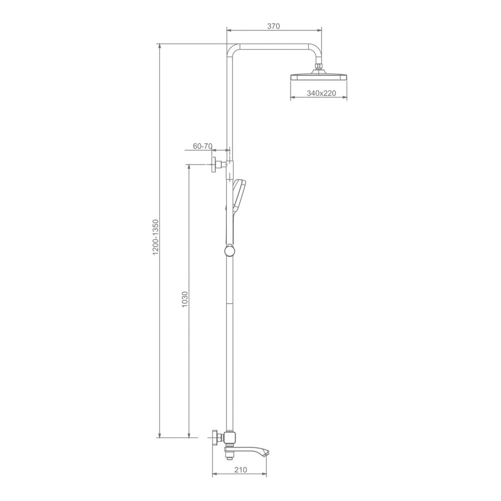 Регулируемая по высоте душевая штанга: 1200-1350 мм.