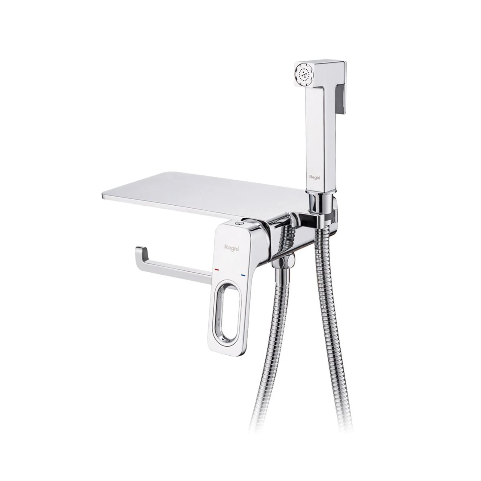 Смеситель Raglo R51.55 с гигиеническим душем встраиваемый с полкой и держателем бумаги, хром