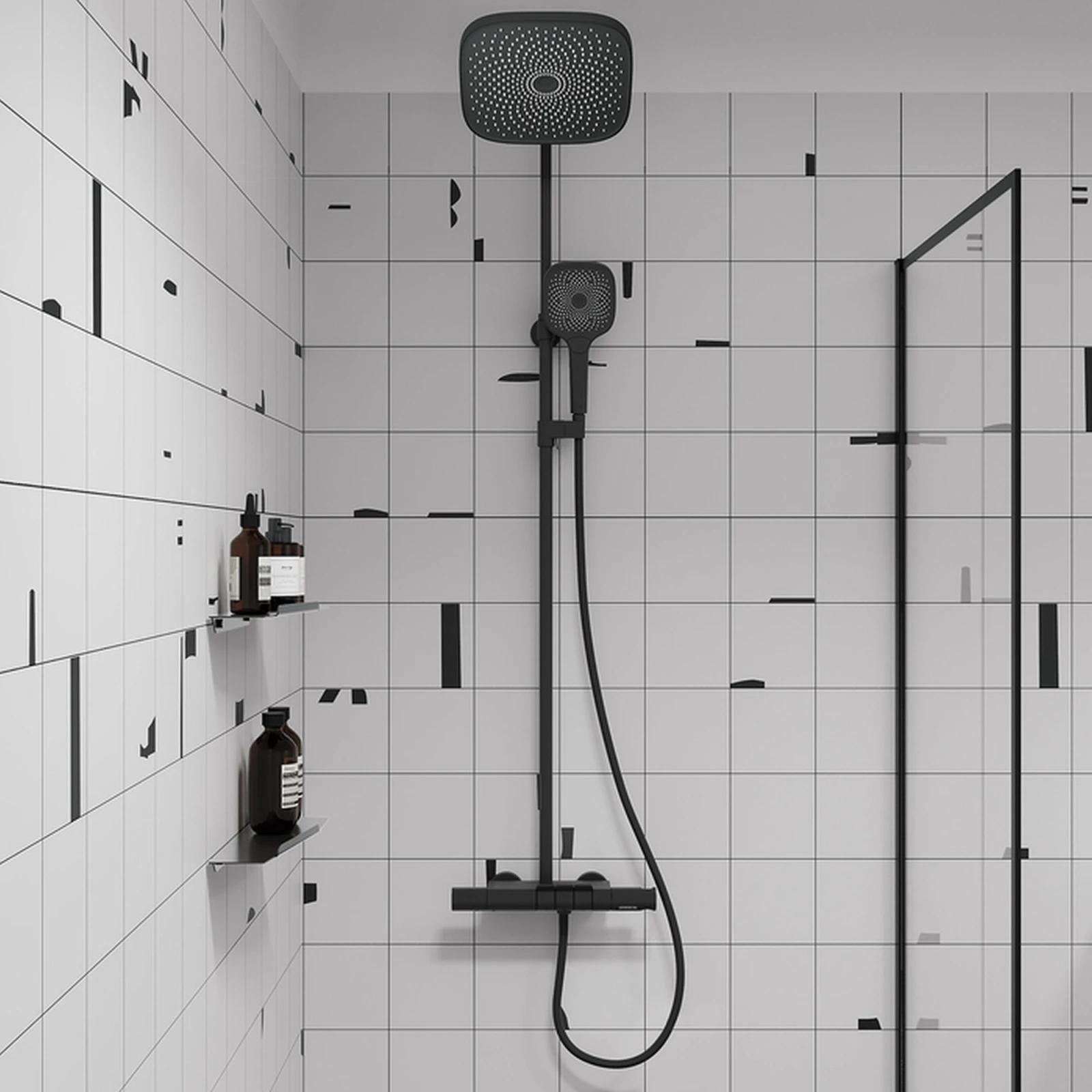 Душевая система с тропическим душем с термостатом, черный матовый, SpaHome, IDDIS, SPHBLTKi06