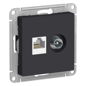 Розетка ATLASDESIGN двойная компьютерная+ТВ RJ45+TV категория 5E механизм карбон
