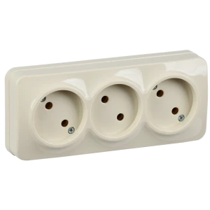 GLORY Розетка трехместная наружная без заземления кремовая