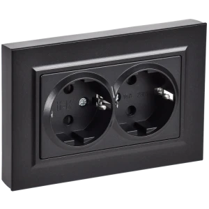 BRITE Розетка 2-местная с заземлением с защитными шторками плоская 16А РСшПл12-3-БрЧ черный IEK