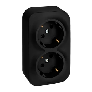 Розетка 2-местная для открытой установки с заземлением без защитных шторок с предварительным подключением 16А черный матовый QUTEO