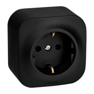 Розетка 1-местная для открытой установки с заземлением без защитных шторок 16А черный матовый QUTEO