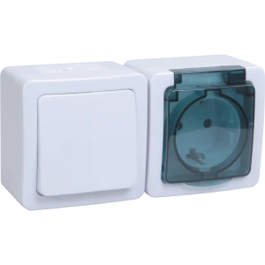 Блок БГб-22-31-ГПБд (Выключатель 1-клавишный + розетка 1-местная с заземляющим контактом) IP54 ГЕРМЕС PLUS IEK