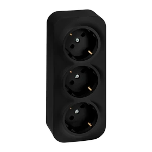 Розетка 3-местная для открытой установки с заземлением с защитными шторками с предварительным подключением 16А черный матовый QUTEO
