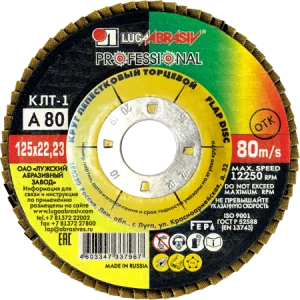 Круг лепестковый КЛТ1 125х22 А 80 (14А 20/P80) Луга